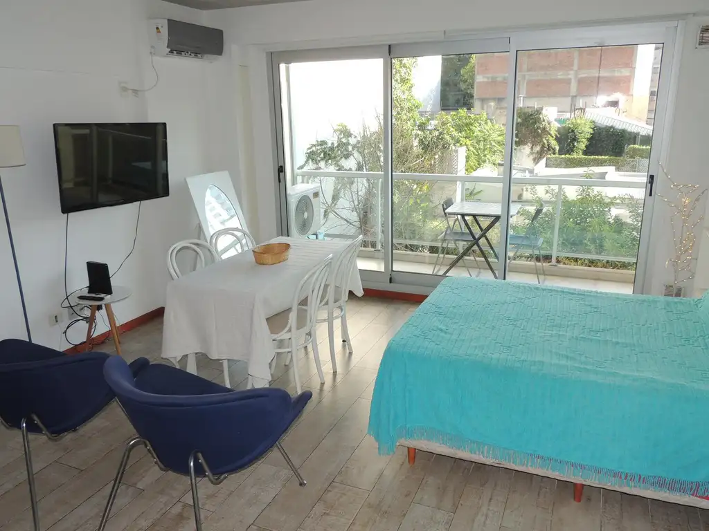 El inmueble se alquila completamente equipado: aire acondicionado, TV, artefacto de cocina, vajillas, utensilios para cocinar, mesa, sillas, sillones, sommier con colchón, almohadas, dos juegos de sabanas, dos juegos de toallas, mesa de luz, veladores, cortina de baño, equipamiento de baño, etc.