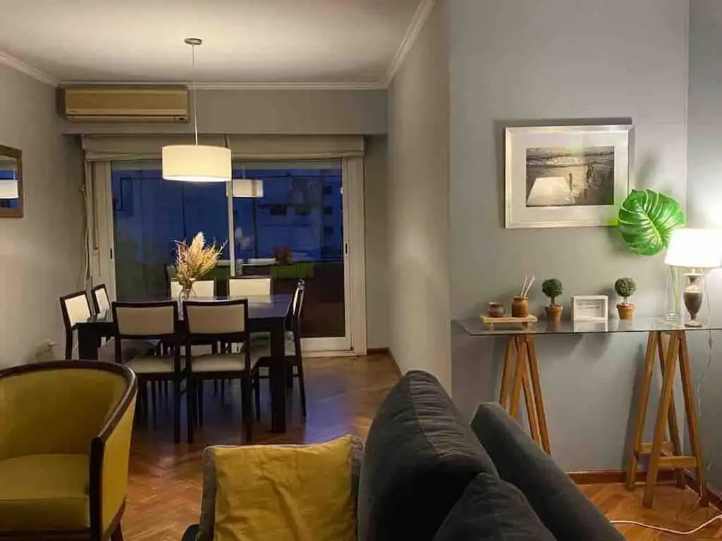 Se trata de un departamento de 100 m2 Aprox. Con mucha luz en todos los ambientes. Consta de palier privado ( es 1 departamento por piso), 3 dormitorios, sala de trabajo independiente, 2 baños completos y 1 toilette , living-comedor, cocina y dos balcones a la calle. Los mismos poseen toldo y los ventanales son de vidrio doble. Tiene 3 split y la calefacción es por losa radiante. Internet y TV por cable, lavarropas automático, microondas, cafetera eléctrica, pava eléctrica, tostadora.