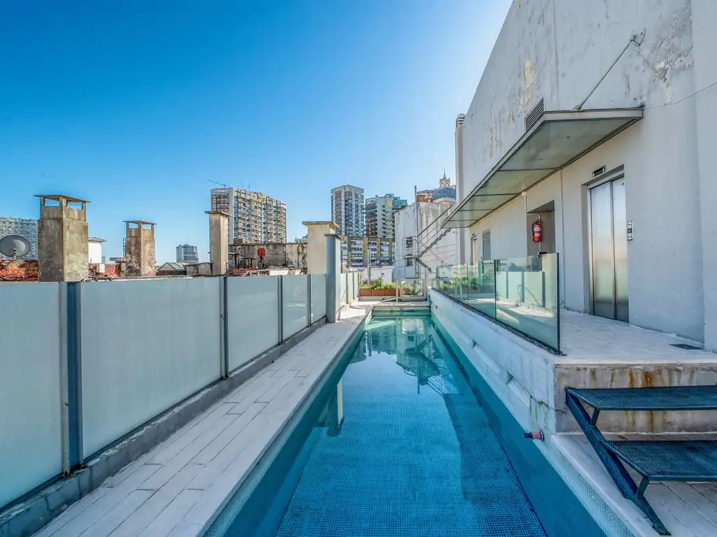 El edificio cuenta con piscina, solárium, sauna y laundry.