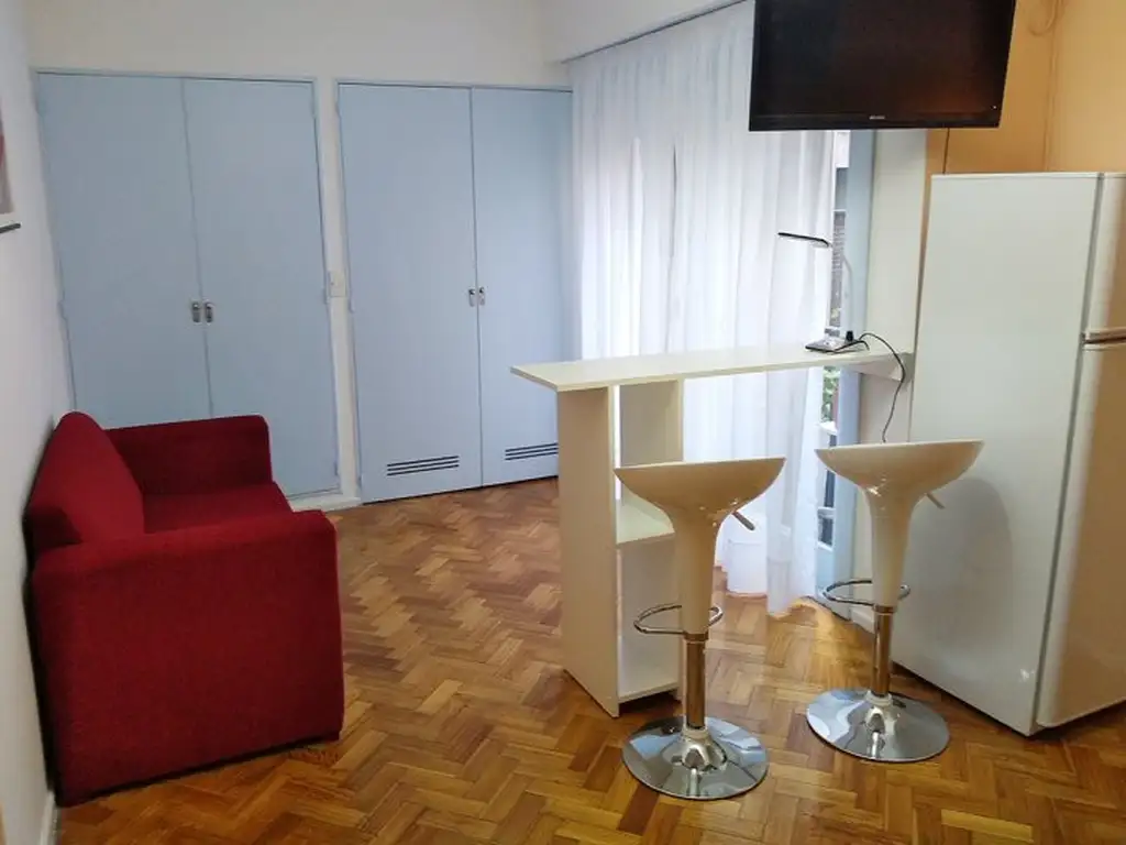 Monoambiente, 23 m2- Max: 2 personas - 8vo piso, lateral, con mini balcón - Cama Matrimonial u opcional 2 camas simples - Aire acondicionado - Heladera con freezer