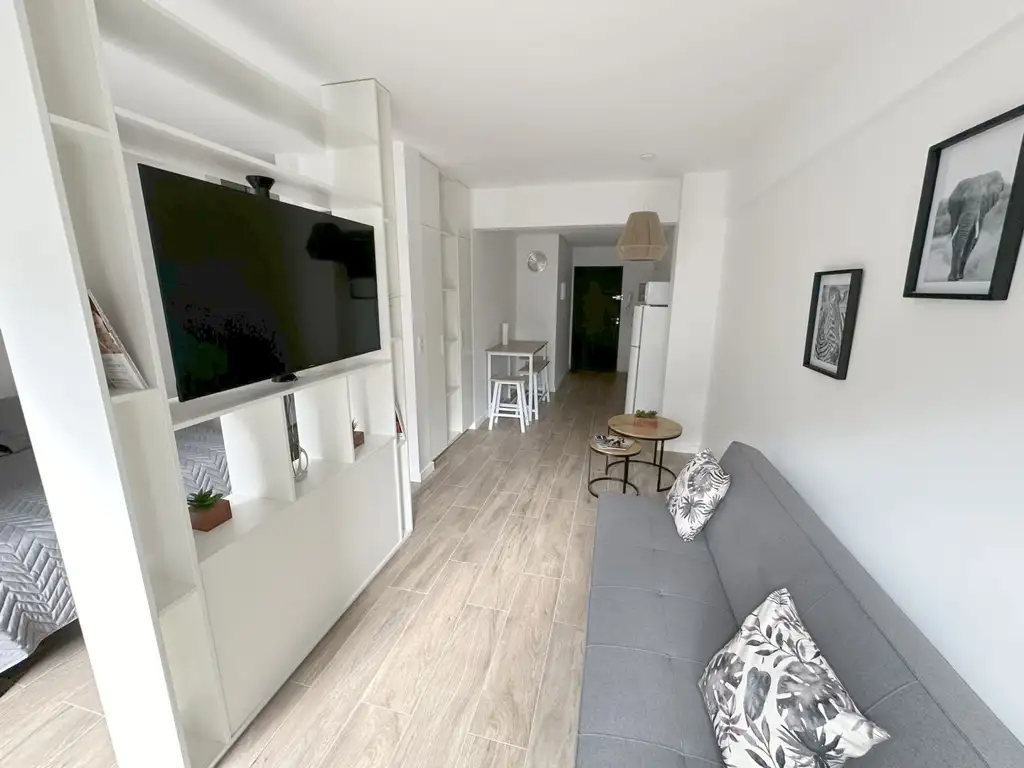 Monoambiente en L. Cocina eléctrica. Microondas. Comedor diario. Cama 2 plazas. Bano completo en suite. Vestidor. Sofa Cama. TV led smart. Aire acondicionado Frio/calor. Balcón a contrafrente abierto. SEGURIDAD 24HS. Totalmente amoblado y equipado.