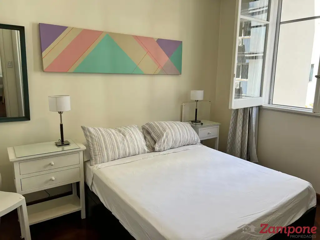 Unidad disponible en alquiler temporal. Totalmente equipado y amoblado. Dos aires acondicionados. Cama queen size. Television. Internet wifi. Vajilla.