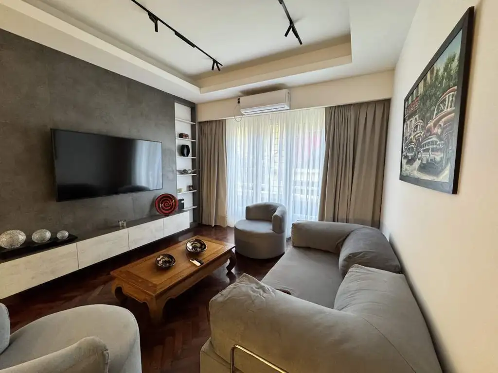 Posee un living completo con muebles de diseño, 1 Smart Tv, Aires acondicionados;