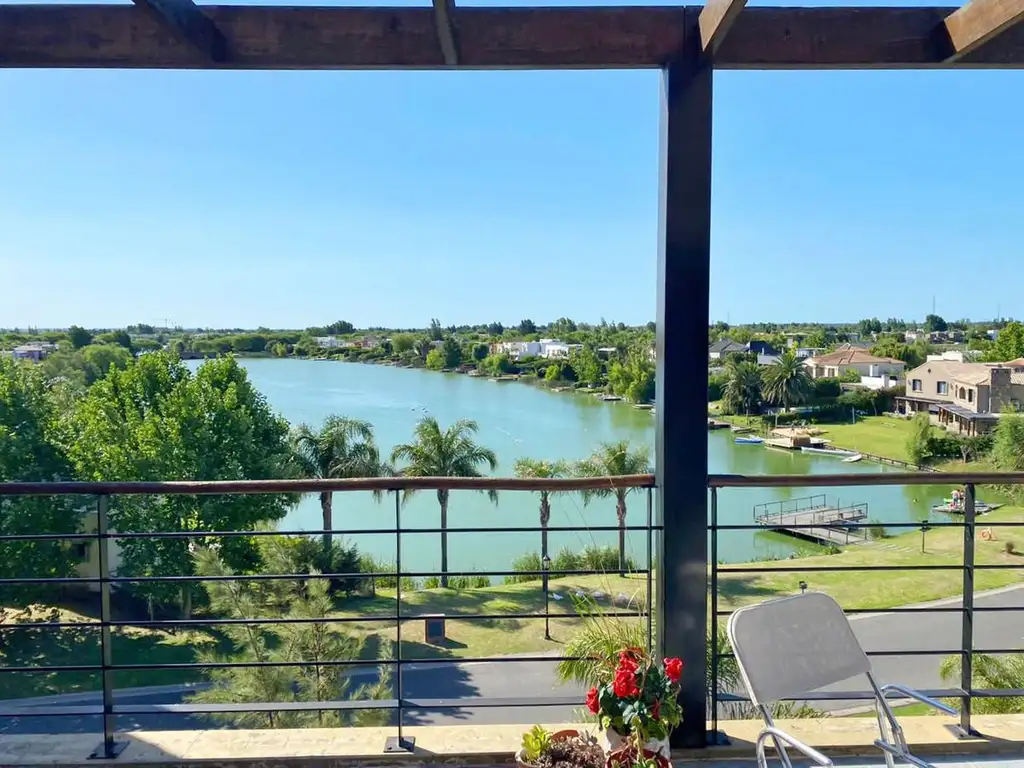 Tiene living comedor muy amplio y luminoso con cocina y lavadero todo sobre un gran balcón terraza con parrilla y reposeras sobre la laguna. Tiene cuarto principal con vestidor y baño y otro cuarto con otro baño. El complejo tiene seguridad, pileta para adultos y niños y canchas de tenis y tiene un parque muy lindo con arboles. Tiene aire acondicionado en el living comedor y en un cuarto. Tiene cable e internet.