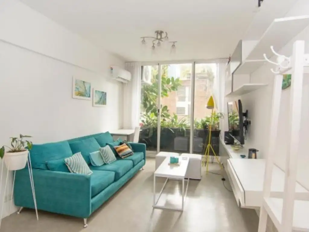 El sector de living se encuentra equipado con sillon, Smart TV, mesa ratonera con dos puff, escritorio, mueble organizador, y aire acondicionado frio/ calor, contiene buena iluminasion que ingresa por la ventana amplia ubicada en el sector.