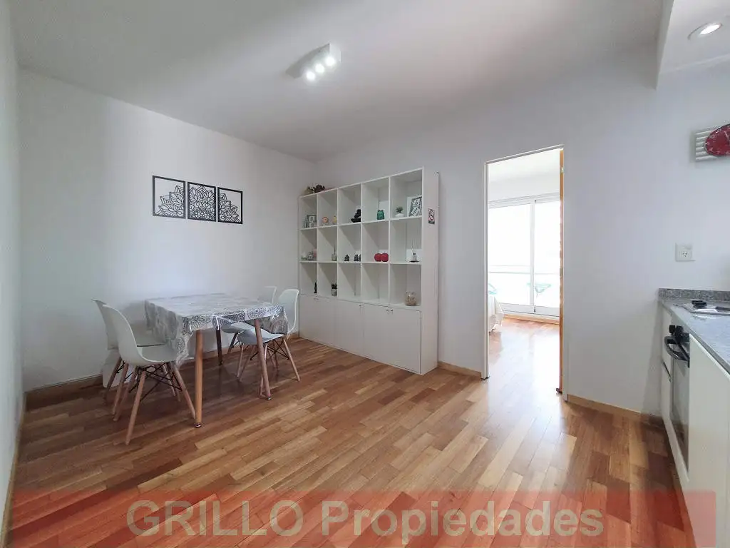 Living comedor con cocina integrada con muebles bajo mesada. Anafe y horno eléctricos.