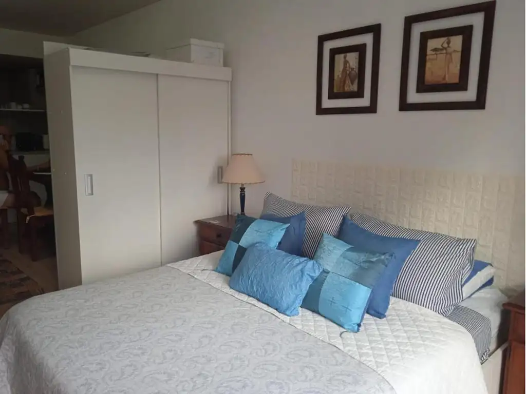 Hermoso y como monoambiente . Cuenta con una cama matrimonial, placard, cocina completa semi separada, sofá, baño completo y balcón.