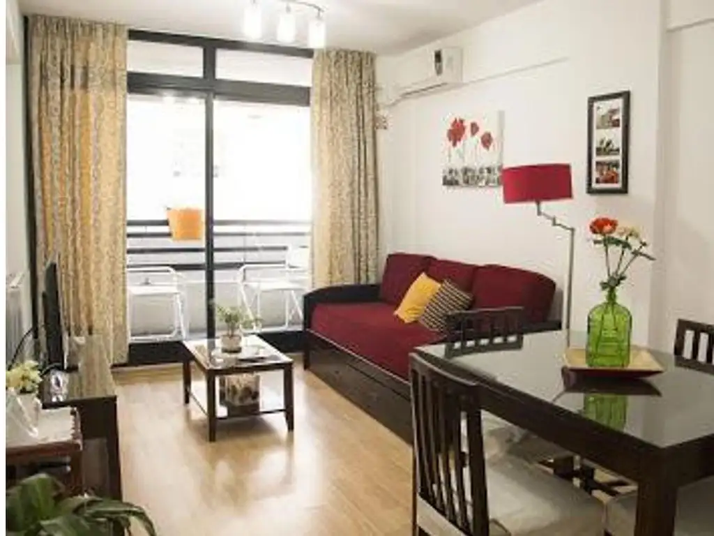 El departamento cuenta con un amplio living muy luminoso, de gran comodidad con un sofá cama tv y con aire acondicionado.