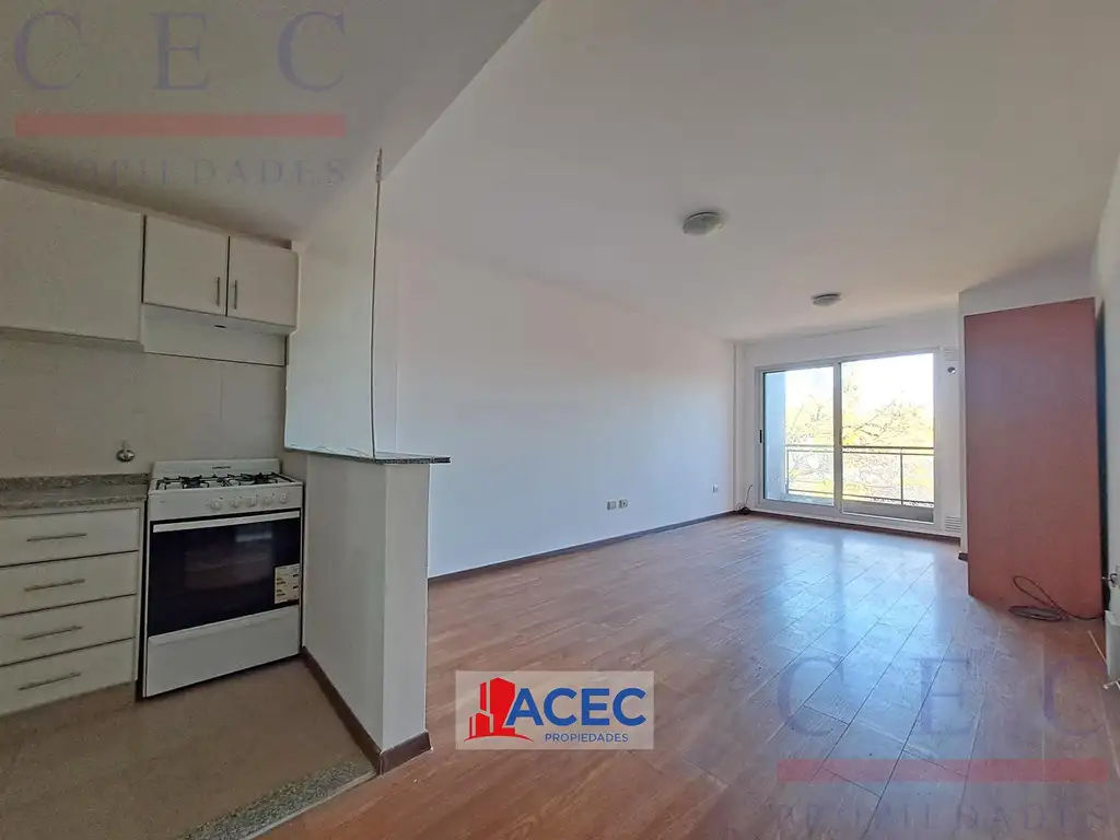 El departamento se compone de un amplio ambiente único con pisos flotantes de primera calidad y salida al balcón a través de gran ventanal con aberturas de aluminio.