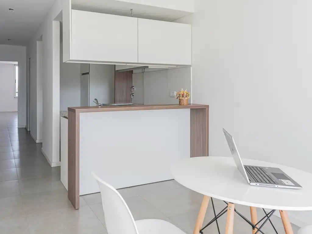 Distribución: Se accede a la propiedad desde el palier a un amplio y luminoso living comedor con salida al balcón, y cocina integrada moderna, Desde el living avanzamos al intimo por un pasillo donde podemos encontrar el baño completo y al final del mismo, el amplio dormitorio que cuenta con un espacio vestidor donde se encuentra el placard empotrado.