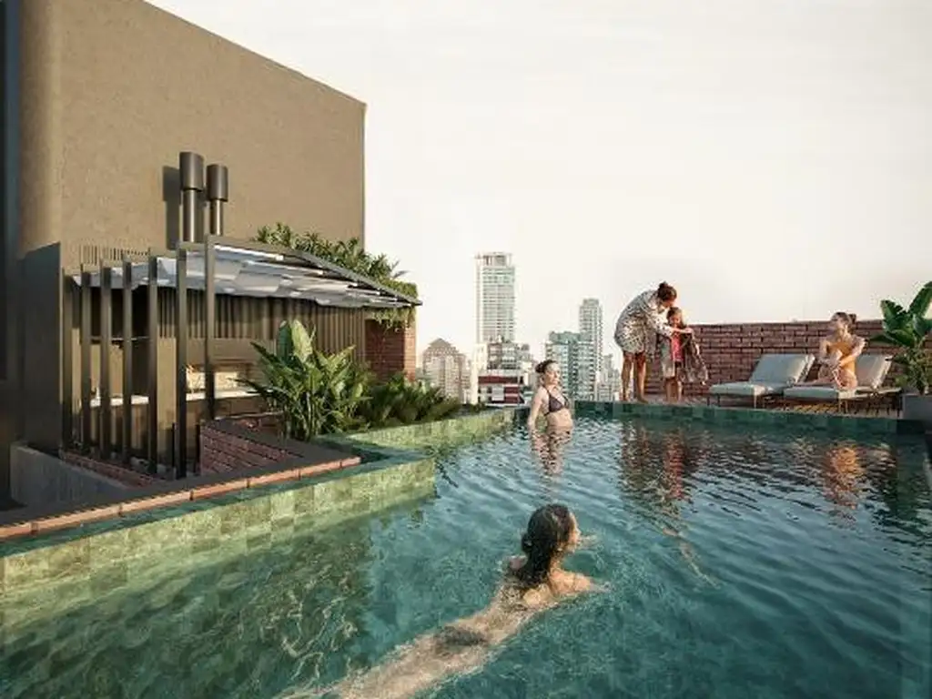 El edificio dispone de PB + 6 pisos, 16 unidades de 1,2,3 y 4 dormitorios, 14 cocheras, amenities y gimnasio.