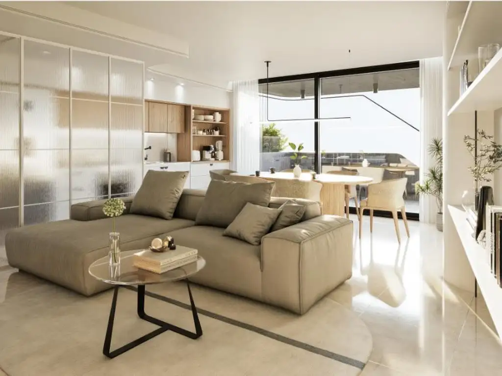 Este departamento cuenta con un dormitorio, un baño, cocina integrada al living comedor y un balcón de 2.30 x 6.25 m2 con parrillero tipo ahumador. Cochera opcional (no incluida en el precio).