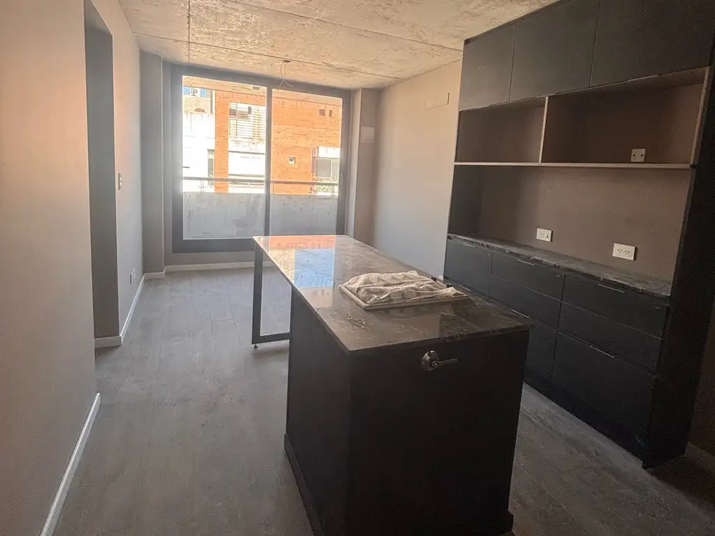 Amplio y luminoso. Living comedor, cocina semi integrada totalmente equipada con mesada, alacena y bajo mesada, dormitorio con placard y un baño completo.