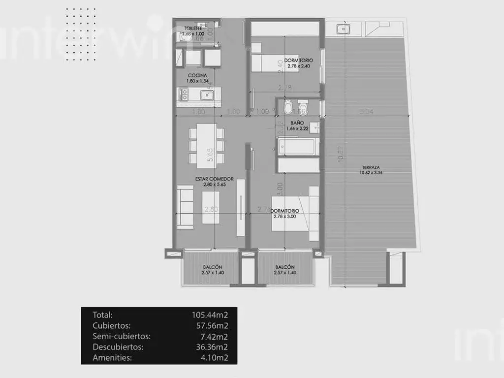 - 2 dormitorios