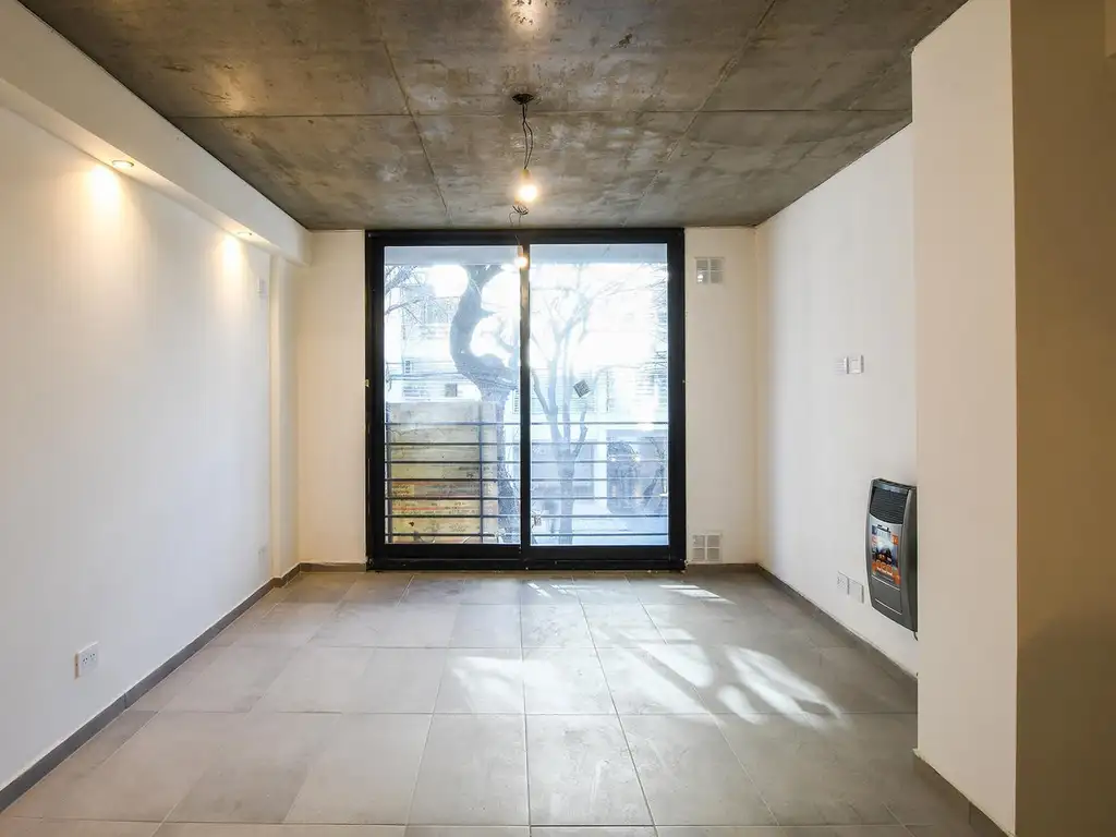 Consta de ingreso a pasillo distribuidor, a la derecha la cocina, equipada con amoblamientos bajo mesada, mesada de granito y alacenas; living comedor integrado, con vista a calle Cochabamba. Cada ambiente ya tiene instalado calefactor.