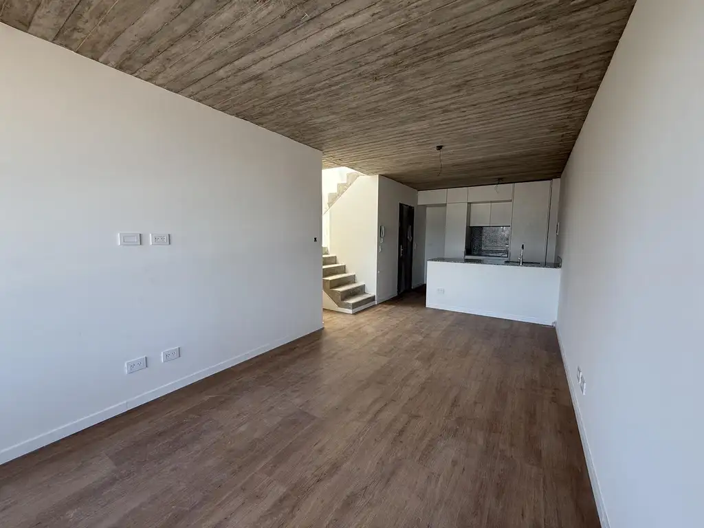 Consta de un living comedor grande con cocina integrada, dos dormitorios , uno con baño en suite y vestidor contiguo y otro dormitorio apenas mas chico que lo acompaña otro baño y los dos dan a un balcón al contrafrente . Por un pasillo se ingresa a una escalera que da a la terraza privada de uso exclusivo de la unidad, en ella podemos encontrar un solárium , parrilla y bacha con agua. Debajo de este escalera hay un lugar de guarda tipo pañol.