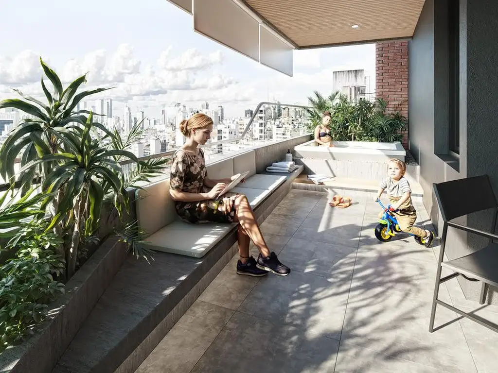- Balcones aterrazados equipados con piscina y parrillero, con