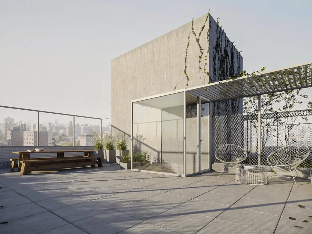 El frente sobre calle Ituzaingó se distingue por una fachada de aluminio de gran impacto visual, que brinda privacidad, seguridad y un toque de modernidad. Los balcones cuentan con jardineras integradas y lamas horizontales que suman naturaleza, frescura y protección solar.