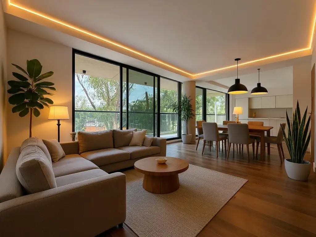 Pisos de porcelanato simil madera, aberturas de doble vidrio hermetico en todos los ambientes, en dormitorios posee persianas electricas. Caldera para calefaccion. Silestone y amoblamiento de madera laqueada.