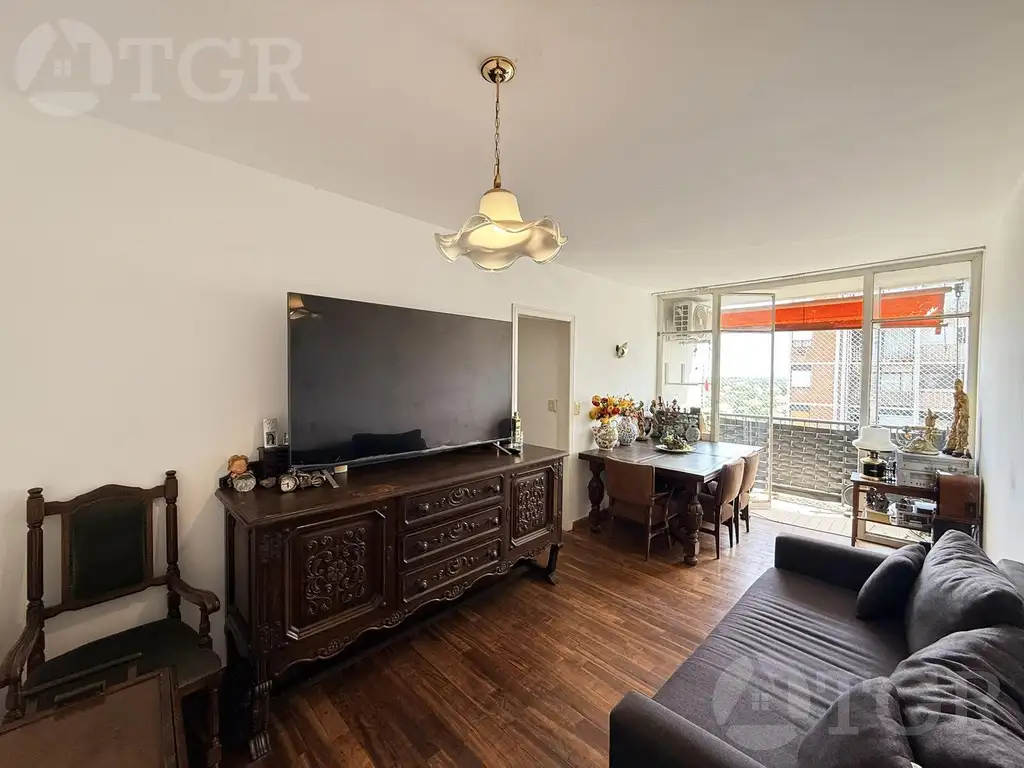 La unidad cuenta con un living amplio con salida al balcón, lo que aporta luz natural y una vista abierta. La cocina es independiente, equipada con muebles bajo mesada y alacena. Dispone de tres habitaciones, todas con placares empotrados, y un baño completo.