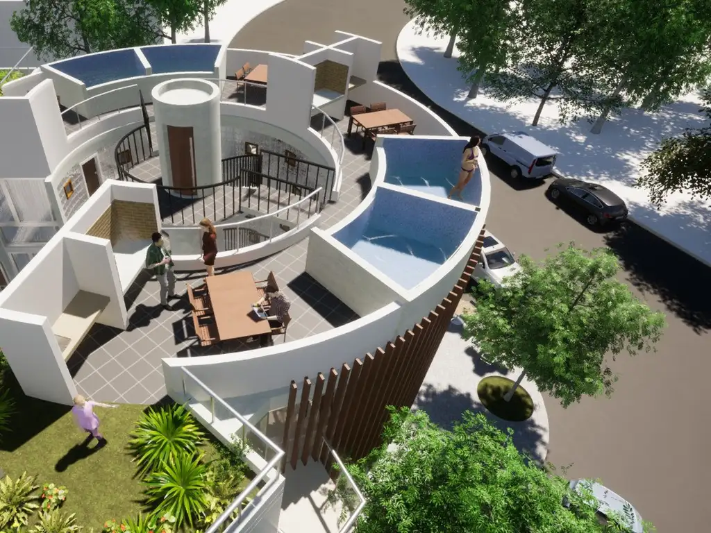 Terrazas con piscinas y parrillas con vista 360ª al barrio residencial