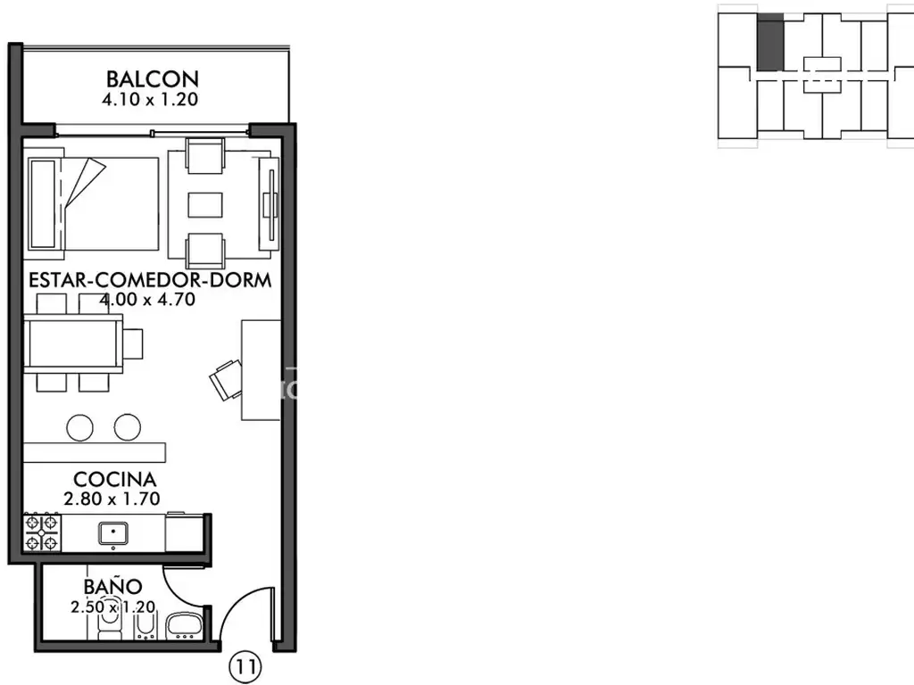 Unidad Monoambiente 1 Baños , con capacidad para 2 personas