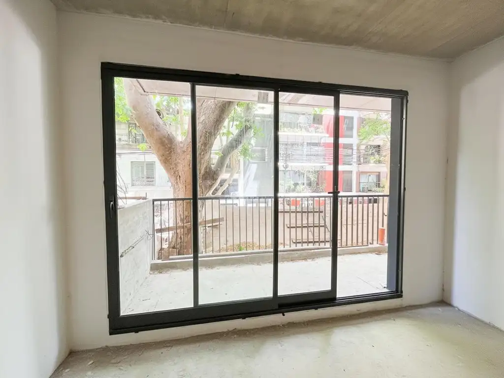 El departamento cuenta con una sala de estar con salida a un balcón.