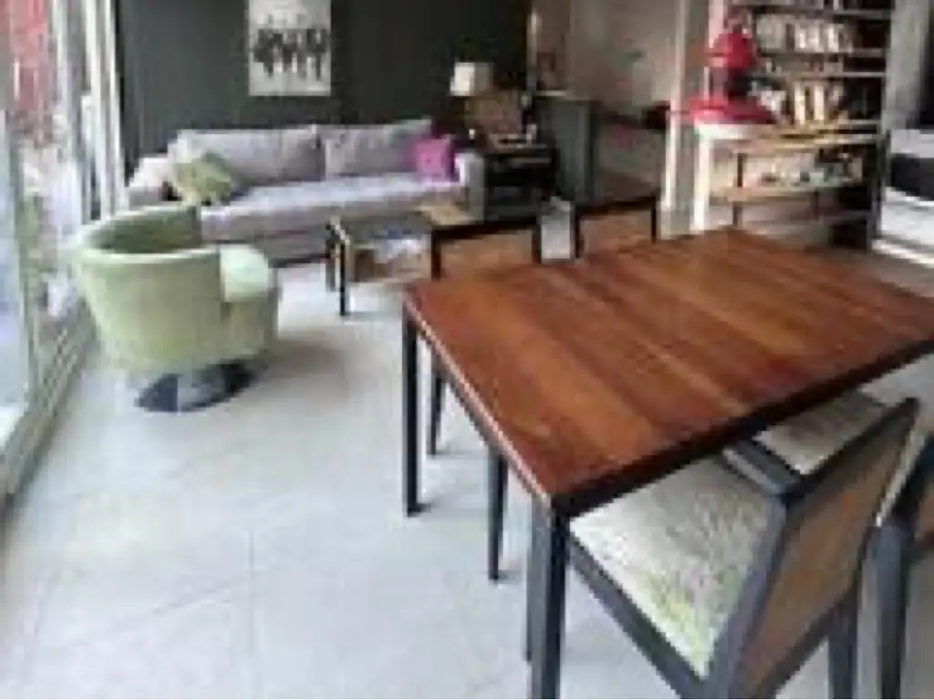 Amplio living comedor con cocina integrada y un cómodo espacio para escritorio