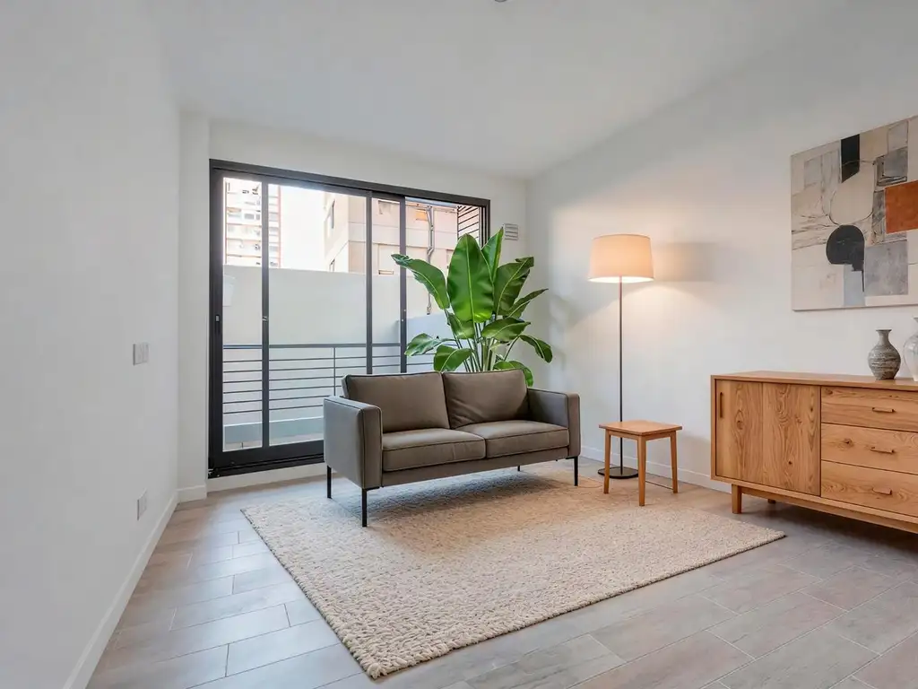 Balcón con vista abierta al contrafrente, perfecto para disfrutar de aire y luz sin ruidos de calle.