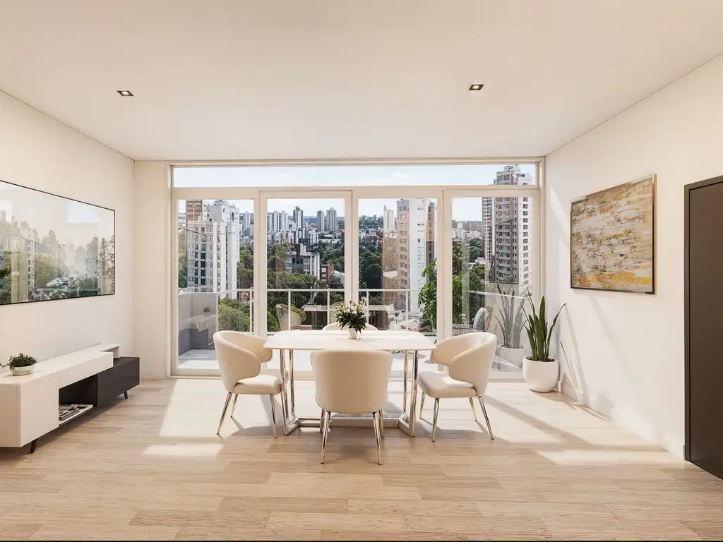 Un hermoso tres ambientes, con cocina integrada, dos baños en total.