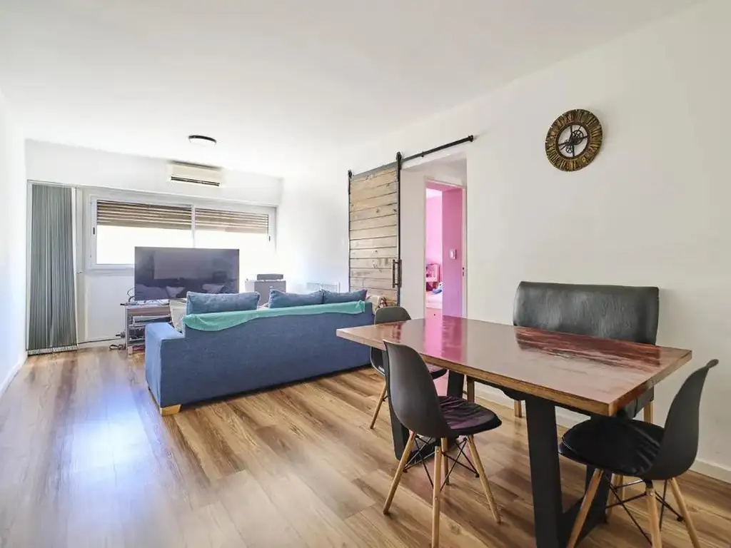 El living comedor es amplio y bien proporcionado, con excelente ingreso de luz. La cocina fue renovada recientemente, presenta muy buen espacio de guardado y una mesada con función de desayunador, y se complementa con lavadero independiente con conexión para lavarropas. El departamento dispone de dos dormitorios, ambos con placard: el dormitorio principal permite incorporar un escritorio, ideal para home office, mientras que el segundo dormitorio también es cómodo y bien dimensionado. El baño fue refaccionado y se encuentra en muy buen estado general.