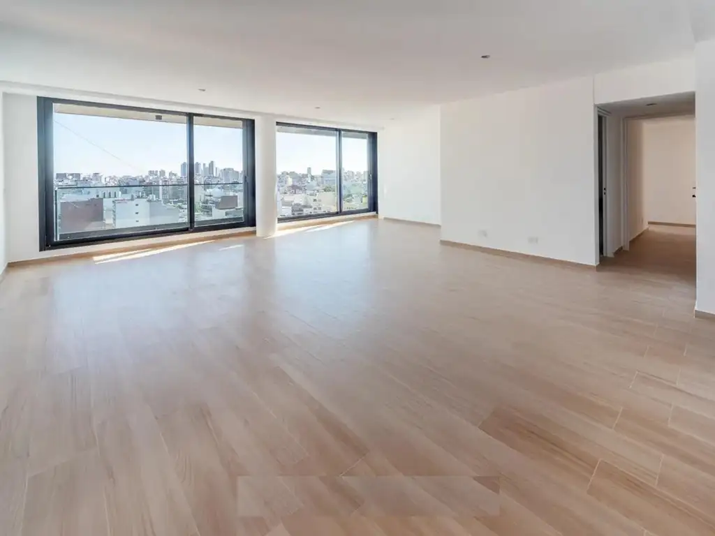 Cuenta con un amplio comedor diario, lavadero y dependencia de servicio. Toilette de recepcion, amplio y luminoso living con ventanales de doble acristalamiento y una vista panoramica a la ciudad. Cuenta con dormitorio en suite y otros 3 dormitorios, todos amplios y luminosos. La unidad se entrega con pisos colocados