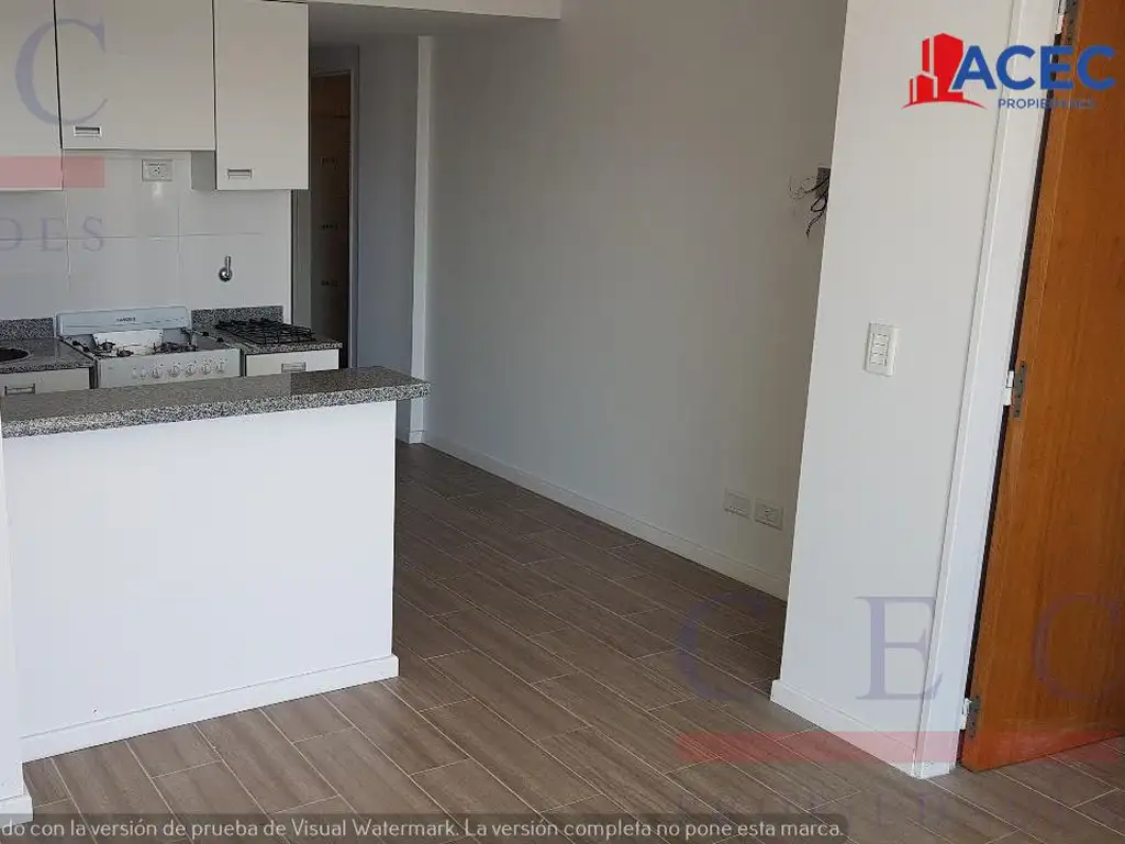 Living comedor con cocina integrada con anafe y horno empotrado, totalmente equipada con alacenas de 1o calidad. Dormitorio con placard.