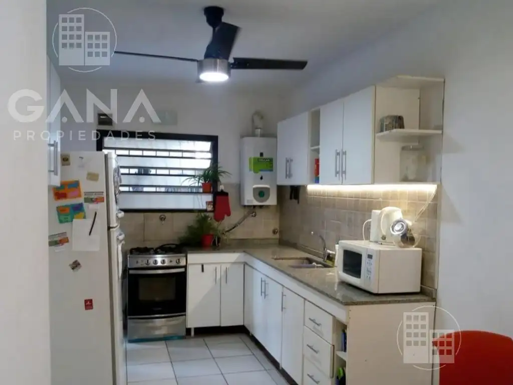 El departamento es una planta baja, de 90m2 tiene 3 habitaciones, 2 Baños, living, cocina/comedor, patio, un lavadero y un guardador o desván chiquito en el patio.