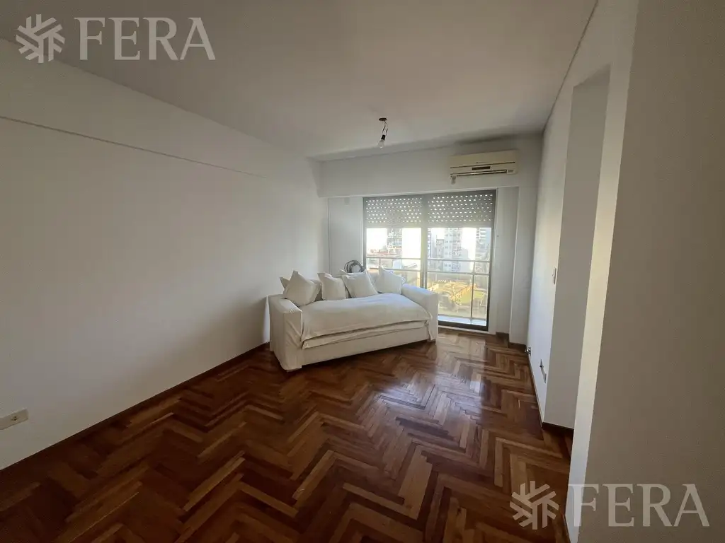 Edificio de ocho pisos con tres departamentos por piso. Cuenta con parrilla y piscina en terraza.