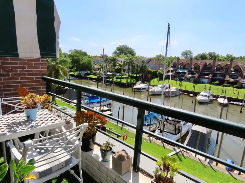 Cerradura electrónica en puerta de acceso, hall de entrada, toilette de recepción con ventana al exterior. Lavadero, con sector de guardado o pequeña habitación. Cocina con modernos y funcionales muebles, gran espacio de guardado, bajo mesada y alacenas. Barra abierta al comedor. Luminoso living y comedor con ventanales y salida a terraza. Terraza con parrilla propia, cerramiento, aire frio calor, amplio placard de guardado, Espectacular vista al canal y a la amarra propia.
