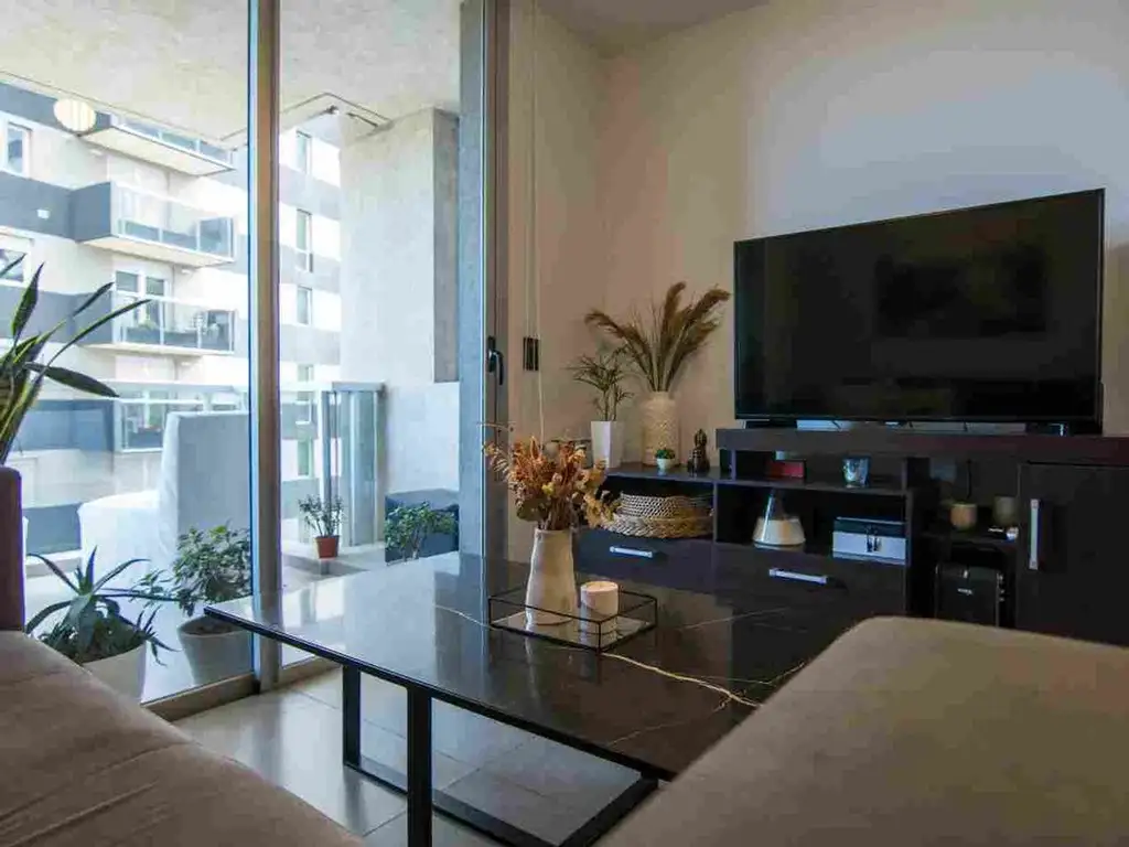 El ingreso a la propiedad es a través de cerradura electrónica , alli nos encontramos con un luminoso y cómodo living comedor con pisos de porcelanato y salida al balcón con vistas al rio y al parque.