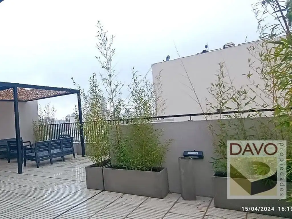 El departamento al frente con balcón dispone: Hall de ingreso, Amplio Living - Comedor, Cocina equipada, muebles altos y bajo mesada. Dormitorio con placard e interiores. Baño completo. Equipo de aire acondicionado frio calor instalado. El edificio: excelente hall de acceso, ascensor automático de alta velocidad, picina,con deck solarium, terraza con áreas verdes, Laundry, Salón de usos múltiples. Monitoreo con CCTV. Seguridad.