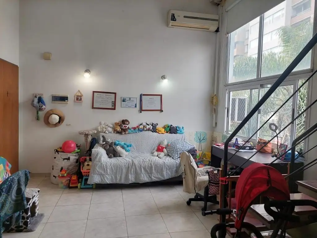 - LA UNIDAD CUENTA CON DOBLE ALTURA, ESCALERA HACIA LA PLANTA ALTA, ACTUALMENTE TRANSFORMADO EN DORMITORIO, PERO QUE SI SE EXTRAE EL DURLOCK BALCONEA AL LIVING,