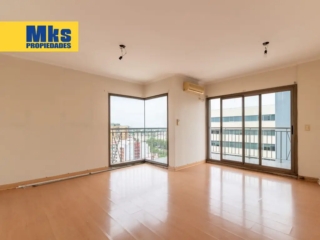 El departamento se compone de tres ambientes con una distribución funcional. El dormitorio principal cuenta con vestidor y baño en suite, aportando mayor comodidad y privacidad. Se destaca un gran balcón que, por su altura y dimensiones, brinda una vista abierta y un espacio exterior aprovechable. Los ambientes se presentan en buen estado general, acorde a la antigüedad del inmueble.