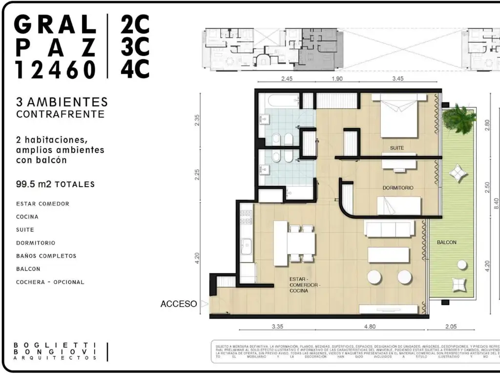 La propiedad se encuentra en segundo piso al contrafrente y posee una superficie total de 99,5 mts²: