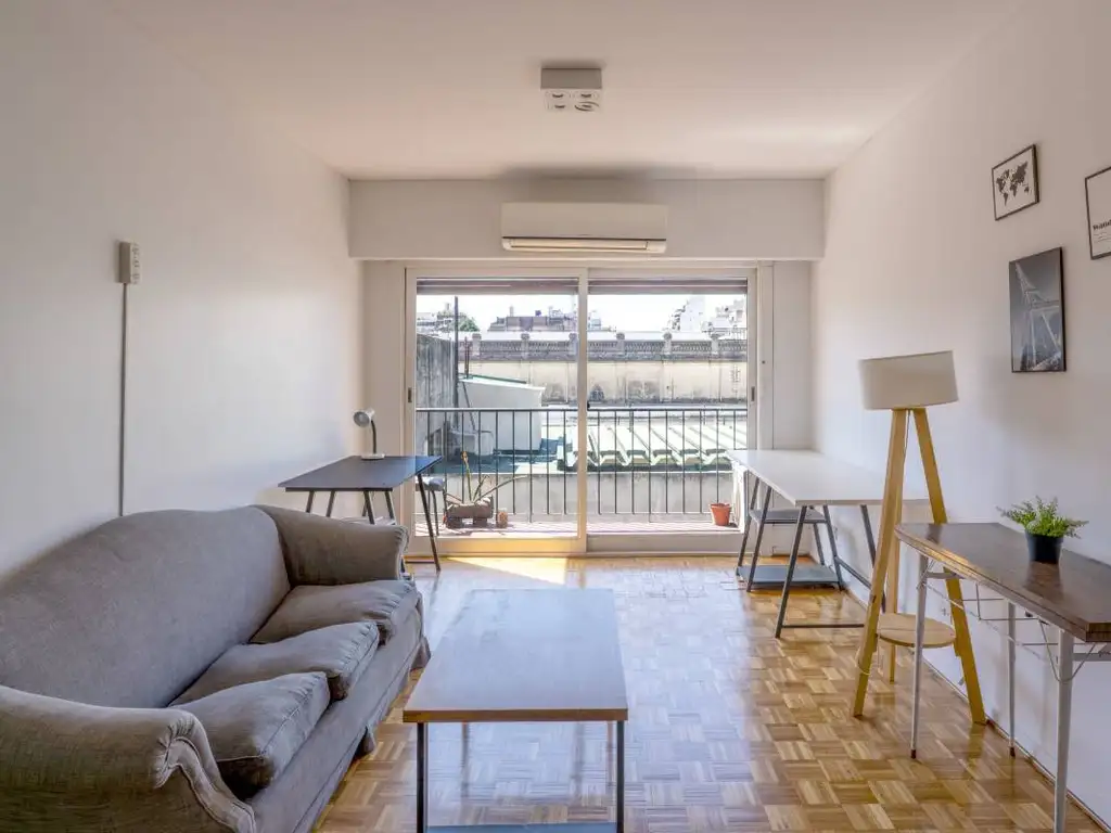 Se ingresa por un hall de distribucion, a la izquierda la cocina amplia, con conexion para lavorropas. Seguido por el Living comedor, con salida a un balcon al frente, muy luminoso todo el dia. Orientacion Este. Y otro hall que conecta el baño completo y el dormitorio principal.