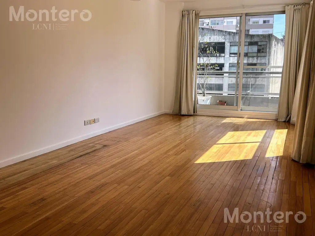 Living comedor con salida al balcón. Gran ventanal en L. Pisos de madera original. Equipo de Aire acondicionado frio. Placard de recepción.