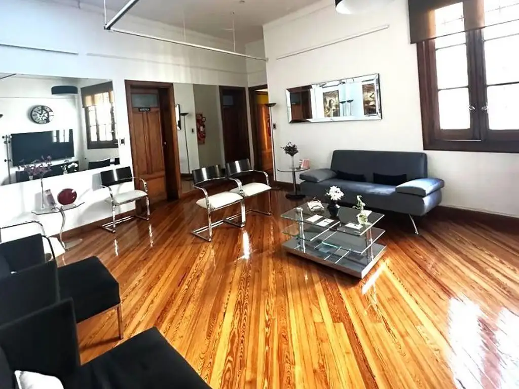 En el departamento se distingue por sus techos altos, molduras y excelente carpinteria en sus puertas, marcos y ventanas ,El mismo consta de un hall de Entrada, comedor , cocina ,toilette. Living muy amplio o recepción, 2 dormitorios ( actualmente consultorios) y dormitorio principal en suite ( Actualmente consultorio principal) con baño completo y placar en el hall de distribución. Todos los ambientes tienen ventilación al exterior lo que proporciona mucha luminosidad y ventilación.