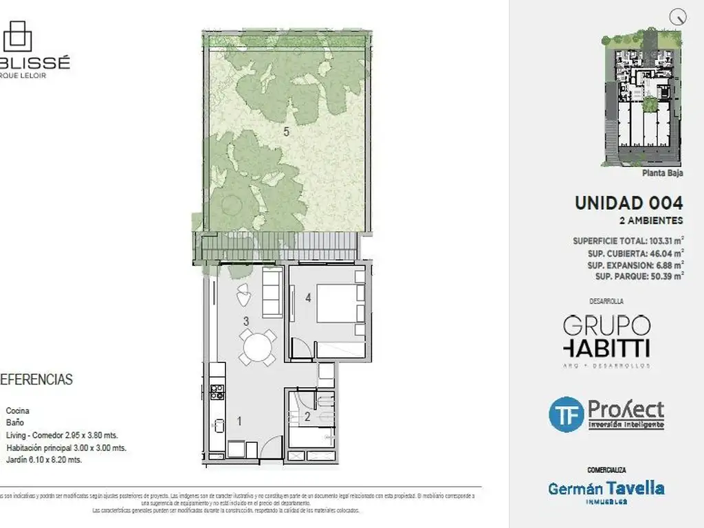 Unidad de 103,31 m2 totales; ubicado en planta baja, con jardín.