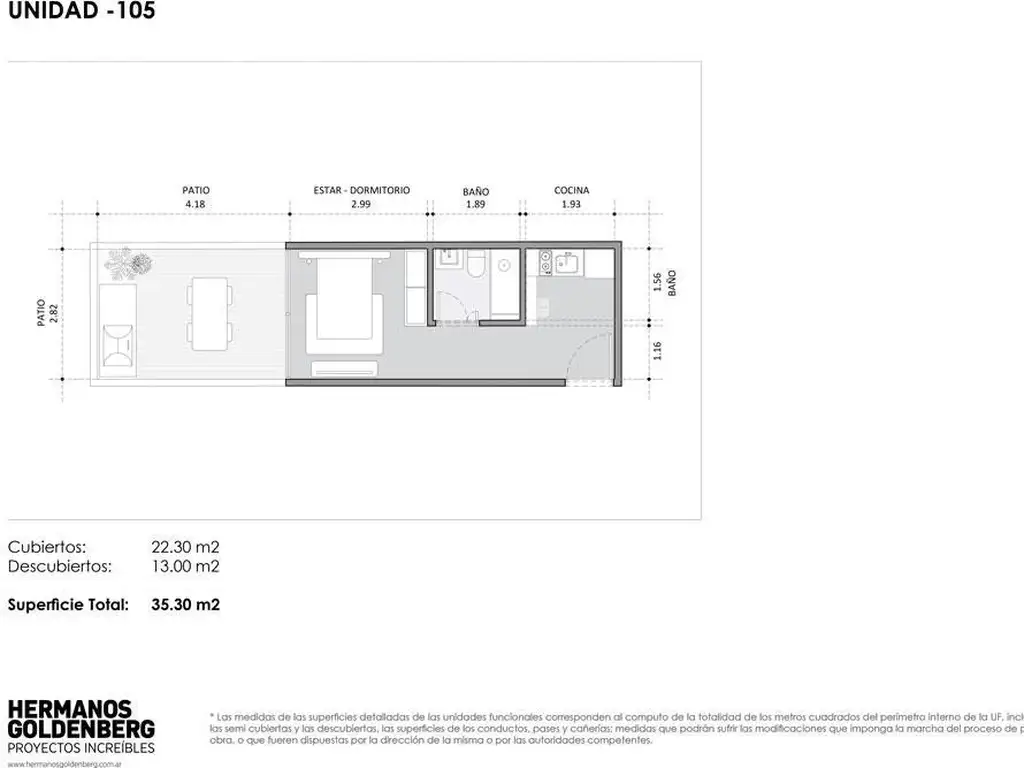 Todas las imágenes, planos, descripciones, y características indicadas son meramente referenciales e ilustrativas y podrán ser modificadas sin previo aviso. Las superficies indicadas son estimadas. Las superficies y medidas definitivas surgirán del plano de mensura final aprobado oportunamente por el GCBA. Las fechas de inicio de obra o posesión son estimadas, podrán ser reprogramadas por la Dirección de obra y dependerán a su vez de un proceso de aprobaciones municipales u otros organismos intervinientes. Los precios indicados podrán modificarse sin previo aviso. El interesado deberá realizar las verificaciones respectivas previamente a la realización de cualquier operación, requiriendo por sí o sus profesionales las copias necesarias de la documentación que corresponda.