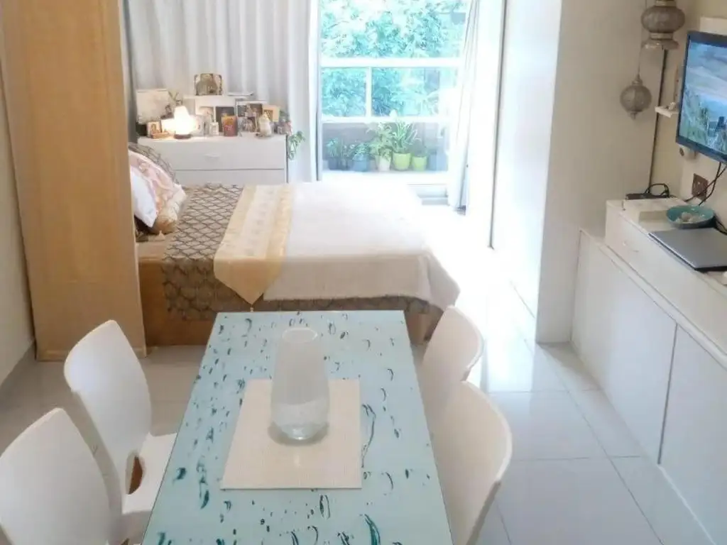 _ El mismo posee cocina eléctrica equipada con muebles sobre y bajo mesada, un espacio principal con espacios de guardado empotrados y un baño completo con bañera. Luminoso, cuenta con balcón y equipo de aire acondicionado.
