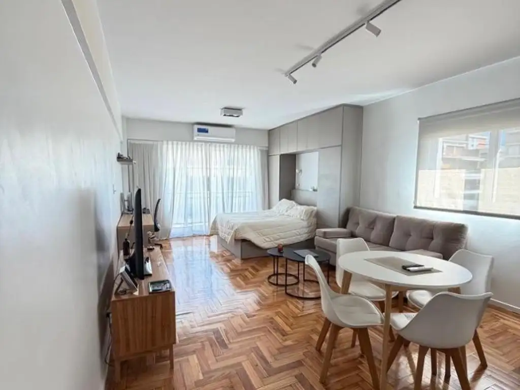 Excelente departamento ubicado en pleno Belgrano, sobre José Hernández al 1600. La unidad se entrega totalmente amueblada y cuenta con un balcón muy luminoso.