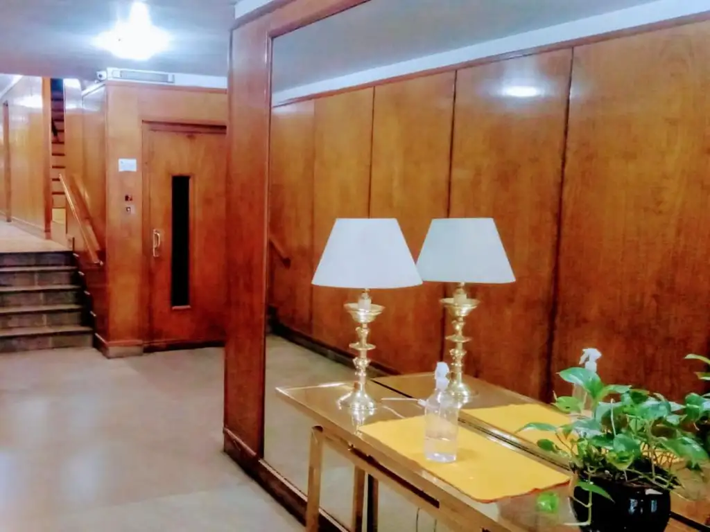 Apto profesional. Departamento de 2 ambientes, al lateral.1º piso. Superficie total de 44m², cubierta de 38m² y descubierta de 6m². Un dormitorio con placard empotrado, un baño completo. Living-comedor en "L", cocina completa. Patio con lavadero semi-cubierto. Aire acondicionado frio/calor. Estado regular. Pisos de cerámica.