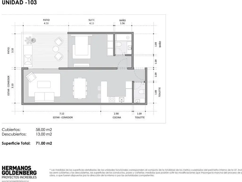 Sup. Total: 71 m2